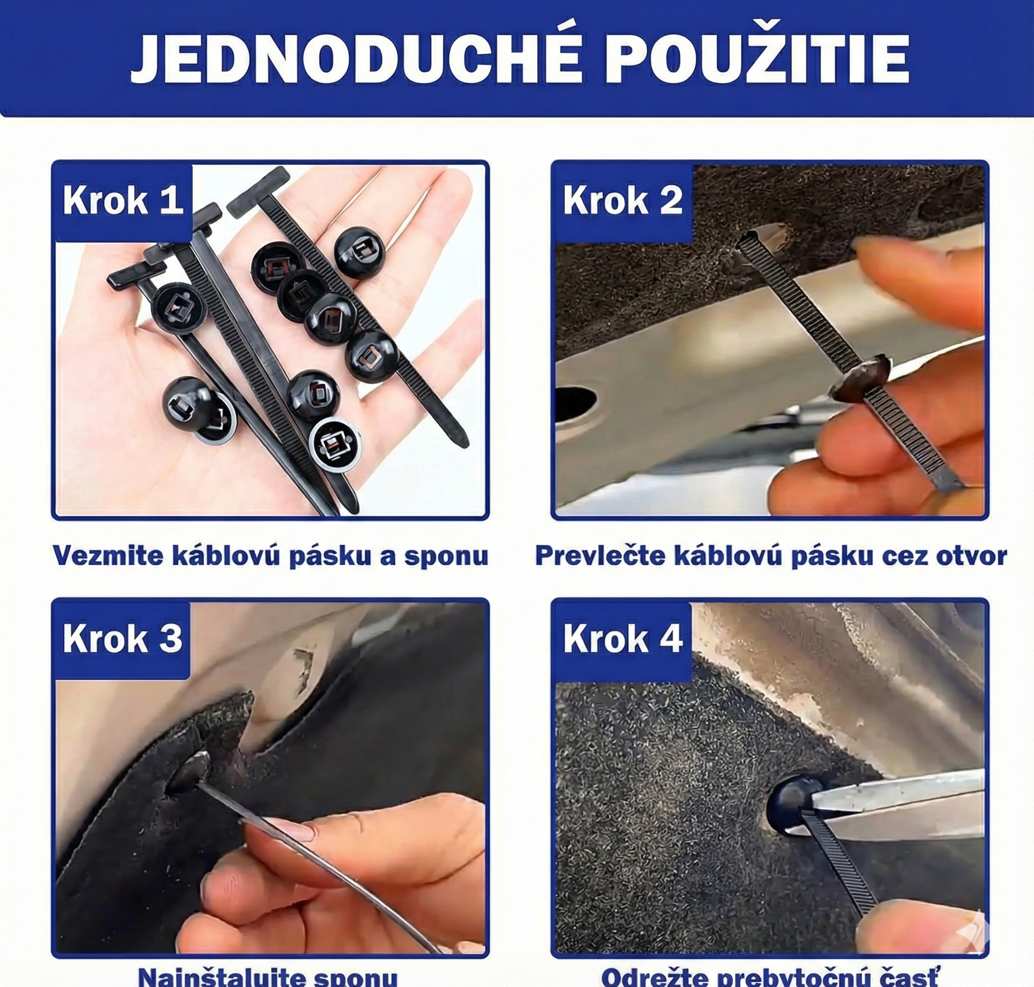 - Rychlá oprava bez nářadí – ideální řešení pro dočasné uchycení blatníku, podběhu nebo nárazníku.