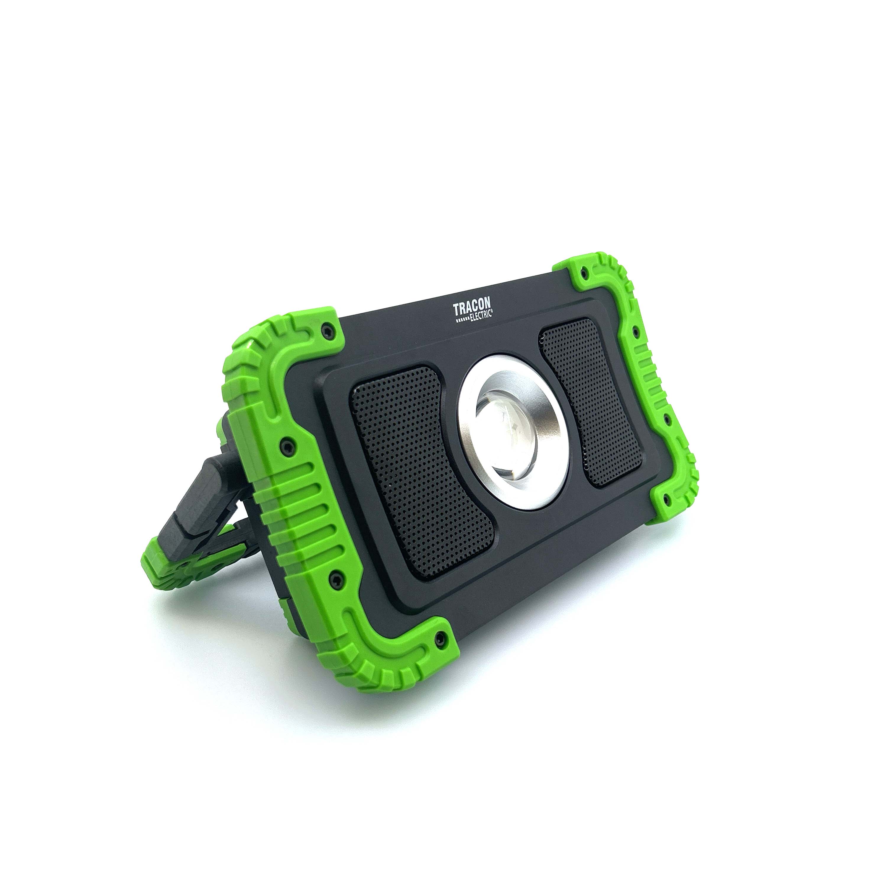 Tracon electric Akumulátorový montážní LED reflektor s reproduktorem Bluetooth