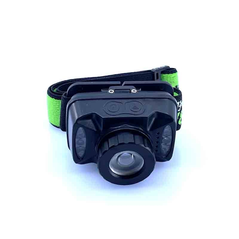 Čelová LED lampa se zabudovaným akumulátorem a se snímačem pohybu.