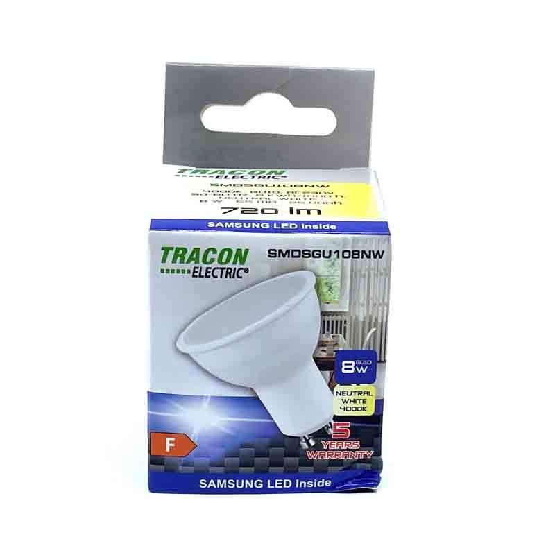 LED neutrální SMD žárovka s plastovým tělem s jmenovitým napětím 230 V a výkonem 8 W. Použitelná v domácnostech, kancelářích. Není použitelná se stmívačem.