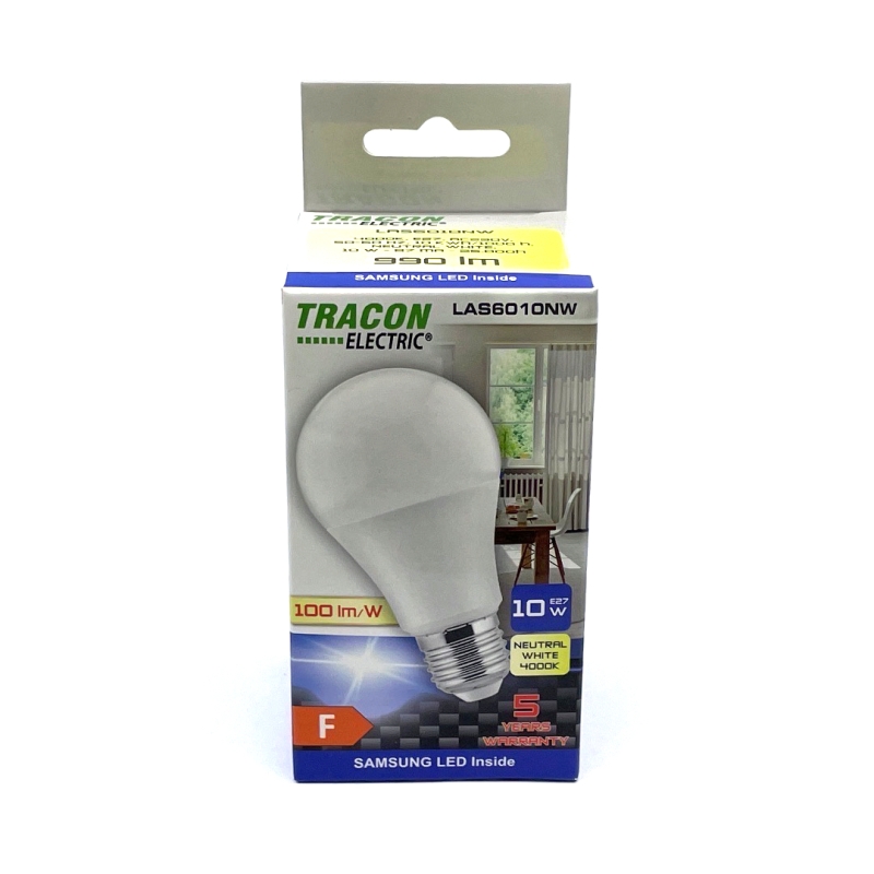 LED neutrální SMD žárovka s plastovým tělem s jmenovitým napětím 230 V a výkonem 10 W. Použitelná v domácnostech, kancelářích. Není použitelná se stmívačem.