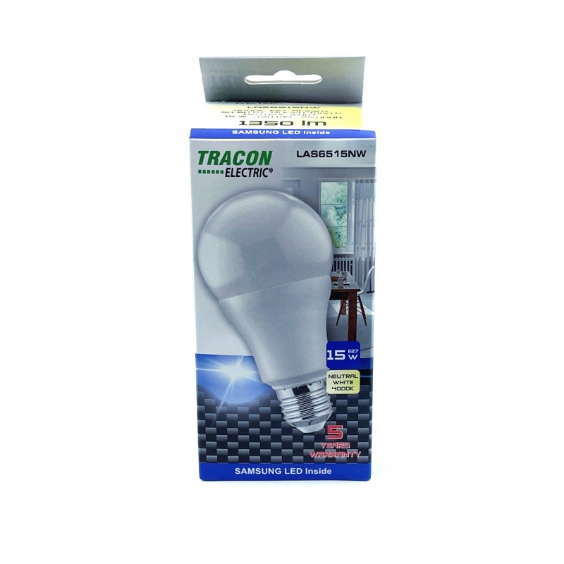 LED neutrální SMD žárovka s plastovým tělem s jmenovitým napětím 230 V a výkonem 15 W. Použitelná v domácnostech, kancelářích. Není použitelná se stmívačem.