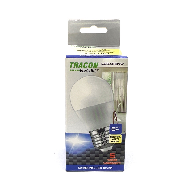 LED neutrální SMD žárovka s plastovým tělem s jmenovitým napětím 230 V a výkonem 8 W. Použitelná v domácnostech, kancelářích. Není použitelná se stmívačem.