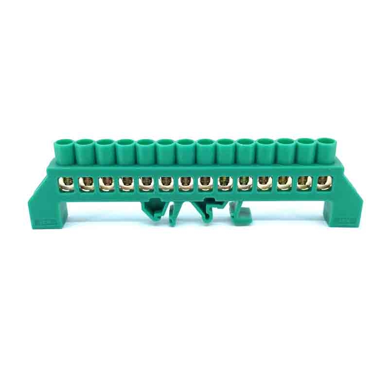 Cu-můstek na ochranné vodiče (PE) izolovaný, zelený. Upevnitelný na montážní desku 35x7.5.