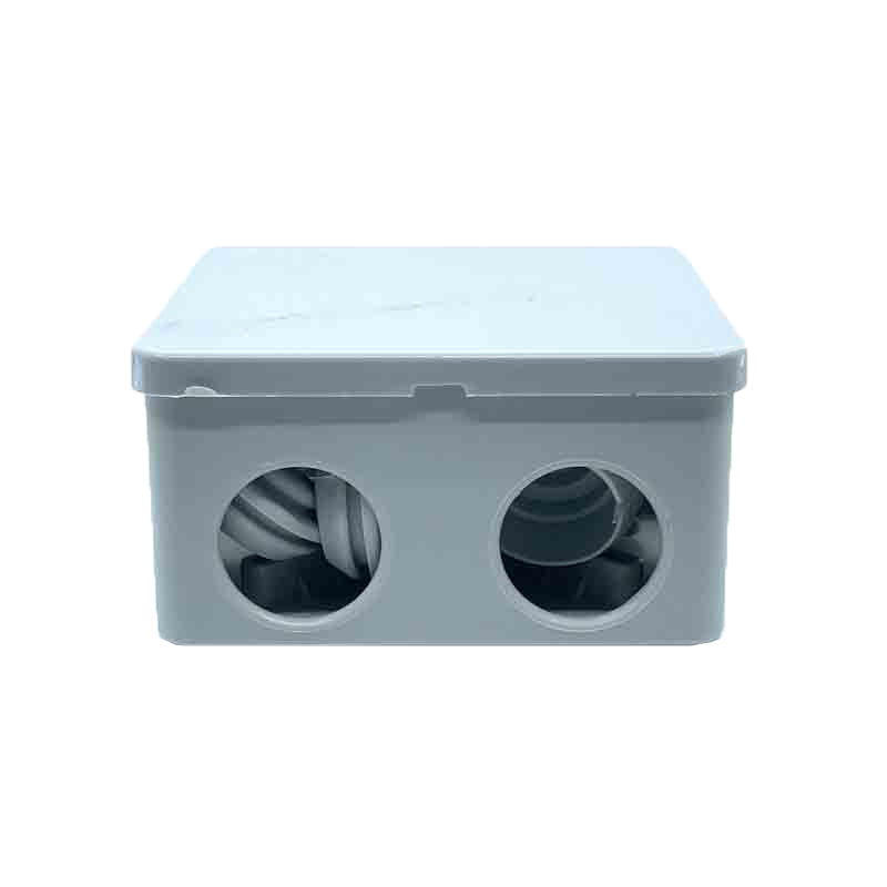 Montážní krabice pro elektromontáže šedá s neprůhledným víkem s plastovými šrouby na upevnění víka, plombovatelné.