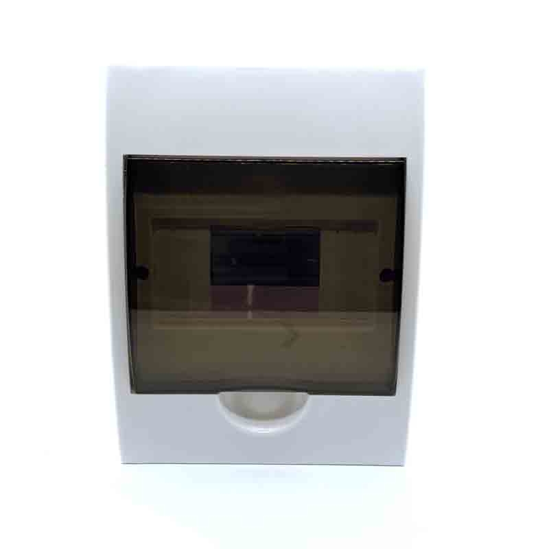 Rozvodná skříň nadomítková 1 × 6 modul s průhlednými dvířky.