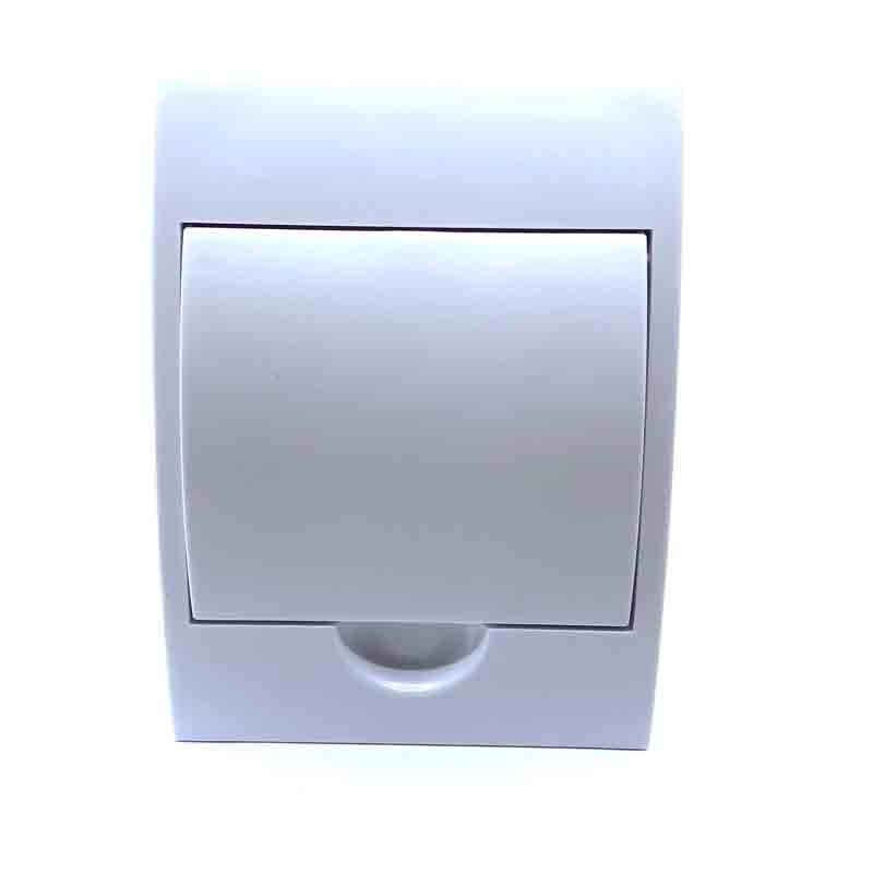 Rozvodná skříň nadomítková 1 × 6 modul s bílými dvířky.