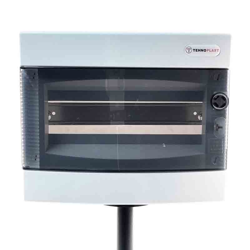 Bílá rozvodnice nad omítku s průhlednými dvířky, 8 modulová