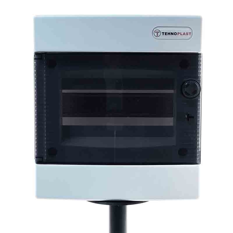 Bílá rozvodnice pod omítku s neprůhlednými dvířky - 8 modulová.