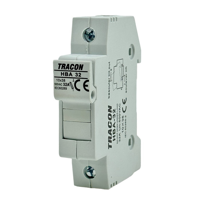 Tento pojistkový odpínač je navržen pro válcové pojistky s nominálním proudem 32 A a rozměrem 10x38 mm.