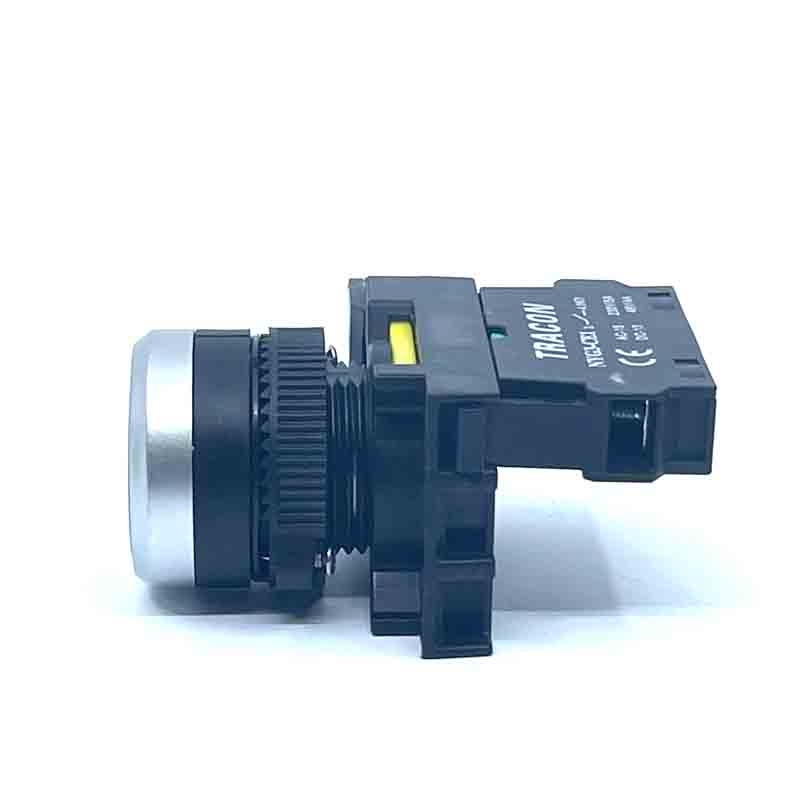 Klasické zelené tlačítko odolné proti vibracím s kontakty 1xNO (spínací), jmenovitým napětím 230V a jmenovitým proudem 5A.