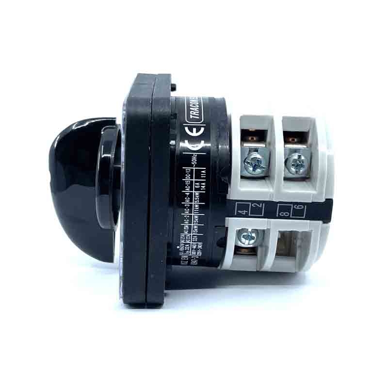 Vačkový vypínač motoru ON-OFF s výkonem 11 kW značky Tracon Electric.