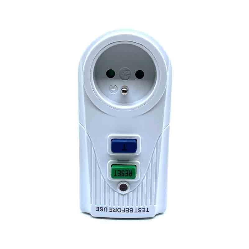 Zásuvkový adaptér s proudovým chráničem a ochranným kolíkem. Na sítě se střídavým a pulzujícím stejnosměrným proudem.