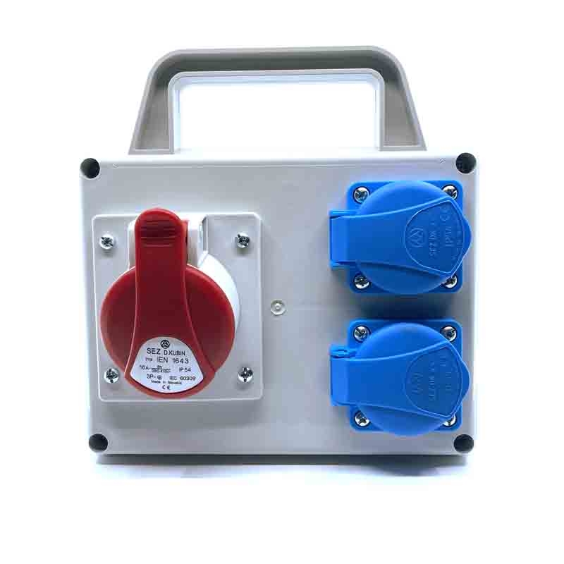 Vnější minizásuvková kombinace ROS 1630 Praktik-IP54 s držákem. Rozvodnice je určena jako součást pevného přívodu v obyčejném vnitřním i vnějším prostředí v rozmezí teplot od -25 ° C do + 40 ° C. Lze ji využít v průmyslových rozvodech, na staveništích, apod.