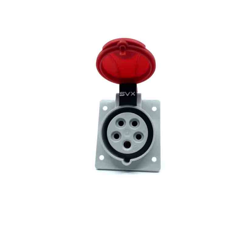 Průmyslová vestavná zásuvka značky SEZ. Tyto zásuvky a vidlice jsou určeny pro připojování elektrických zařízení a spotřebičů na nízké napětí. Jednou z výhod tohoto spojení je možnost opakovaného rozpojení obvodu s vysokou pevností a odolností.