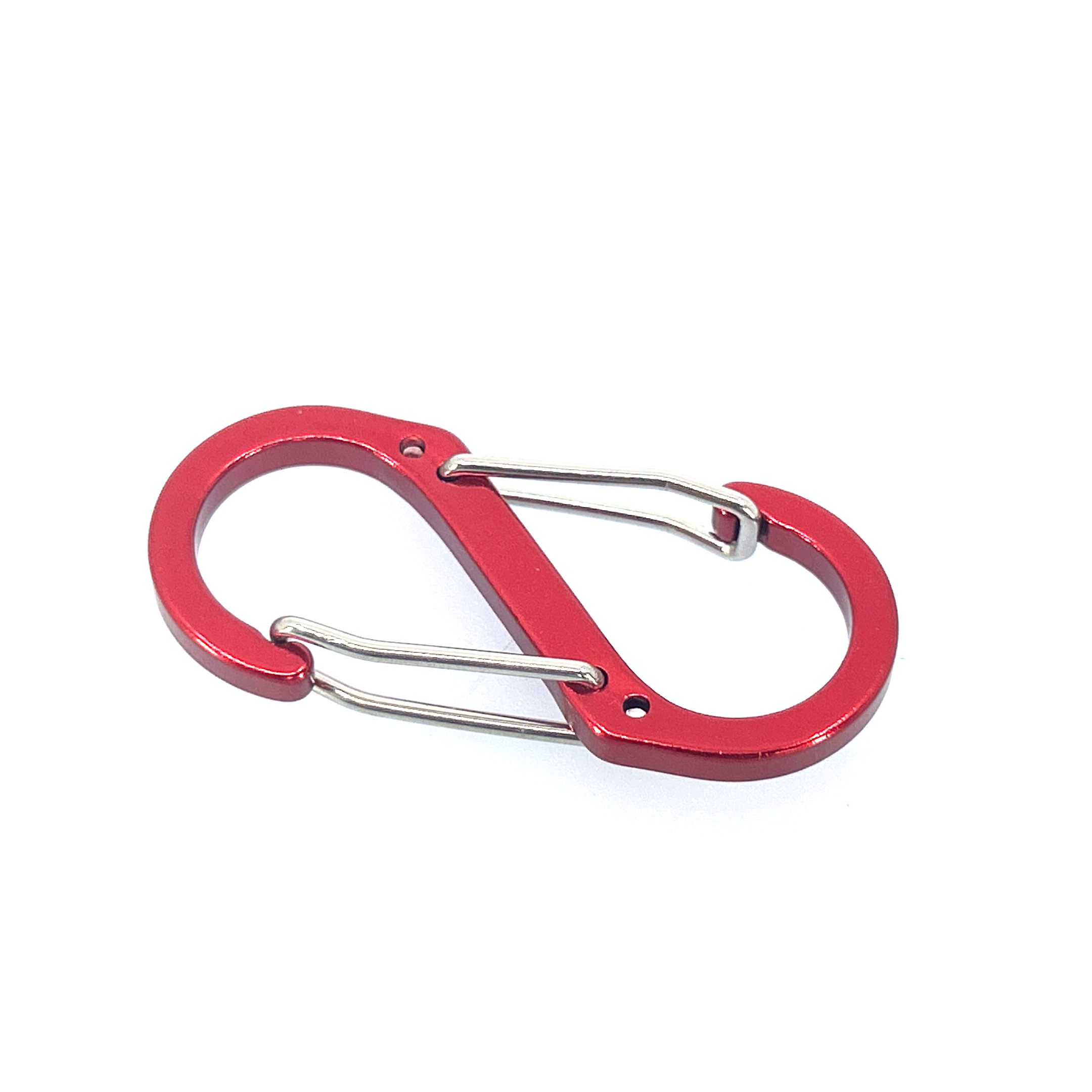 Okrasná karabina ve tvaru S-háku s pojistkou - červená