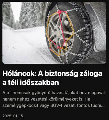 A láncok az autók kerekeire vannak felszerelve, hogy nagyobb gumiabroncs tapadást biztosítsanak, ha hó vagy jég van az úton. Bár a törvény szerint nem kell mindig hóláncot cipelnie magával, ez egy hasznos eszköz. Mindenkinek, aki télen autóval megy a hegyekbe, készen kell hogy áljon a csomagtartóban.