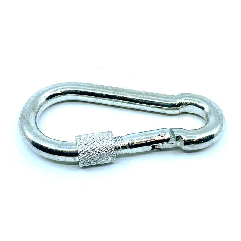 Karabina s pojistkou DIN 5299D pozinkovaná je ocelová karabina s povrchovou úpravou v bílém galvanickém zinku pro lepší odolnost proti abrazi a mechanickému poškození. Díky tomu je karabina použitelná i v náročných podmínkách.