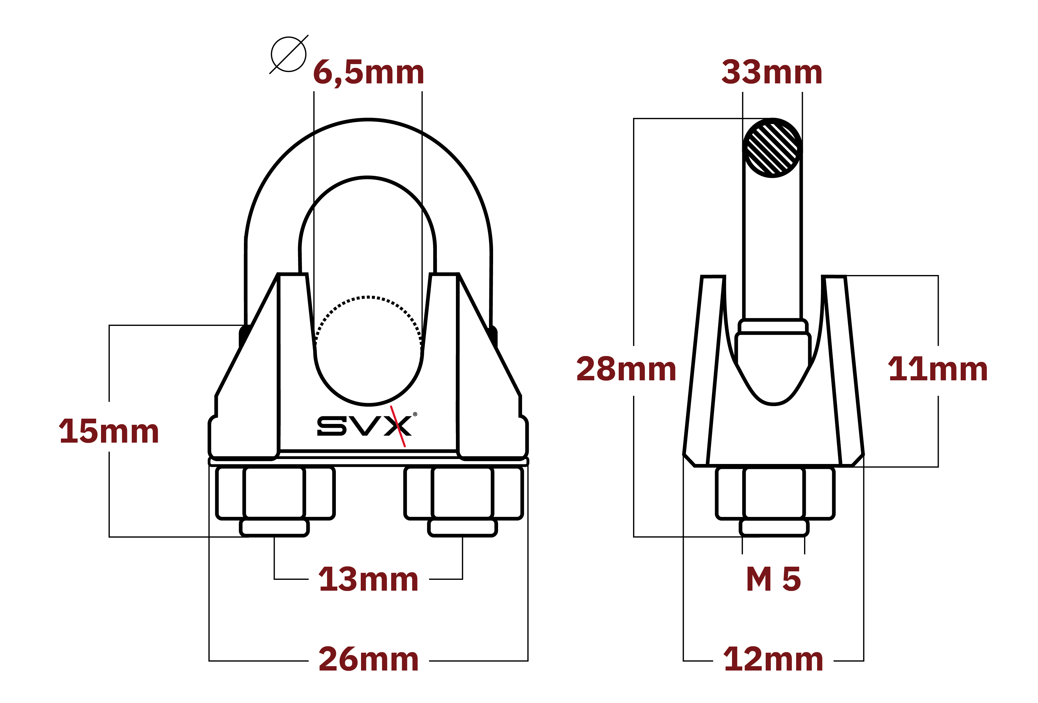 - Spoj této lanové svorky je určen pro komerční (běžné) použití. Pro průmyslové použití, např. výtahy a podobně, použijte lanovou svorku DIN 1142.
