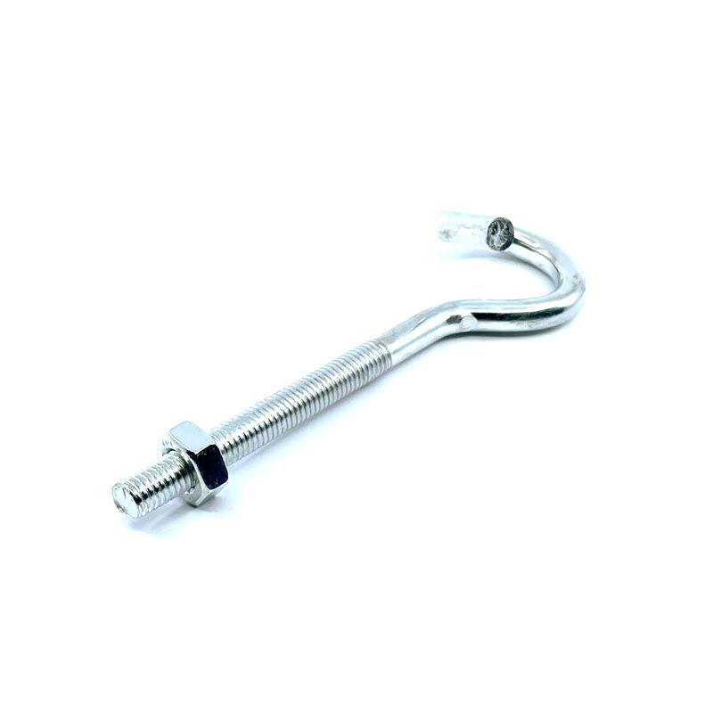 Houpačkový hák s metrickým závitem a pozinkovaným povrchem. Tento hák se závitem a se zakrouceným okem umožňuje bezpečné zavěšení houpačky pomocí matice a podložky, kdy je možné zavěšení nad nosný trám.