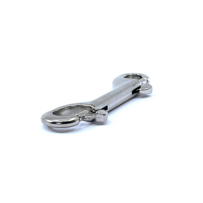 Konstrukce karabiny s dvojitým zakončením umožňuje univerzálnější uchycení. Pružinové šrouby poskytují bezpečné zavírání a snadno otevíratelnou palcovou páku. Oboustranná karabina má široké využití v průmyslu, ve volném čase, na farmách i při sportu.