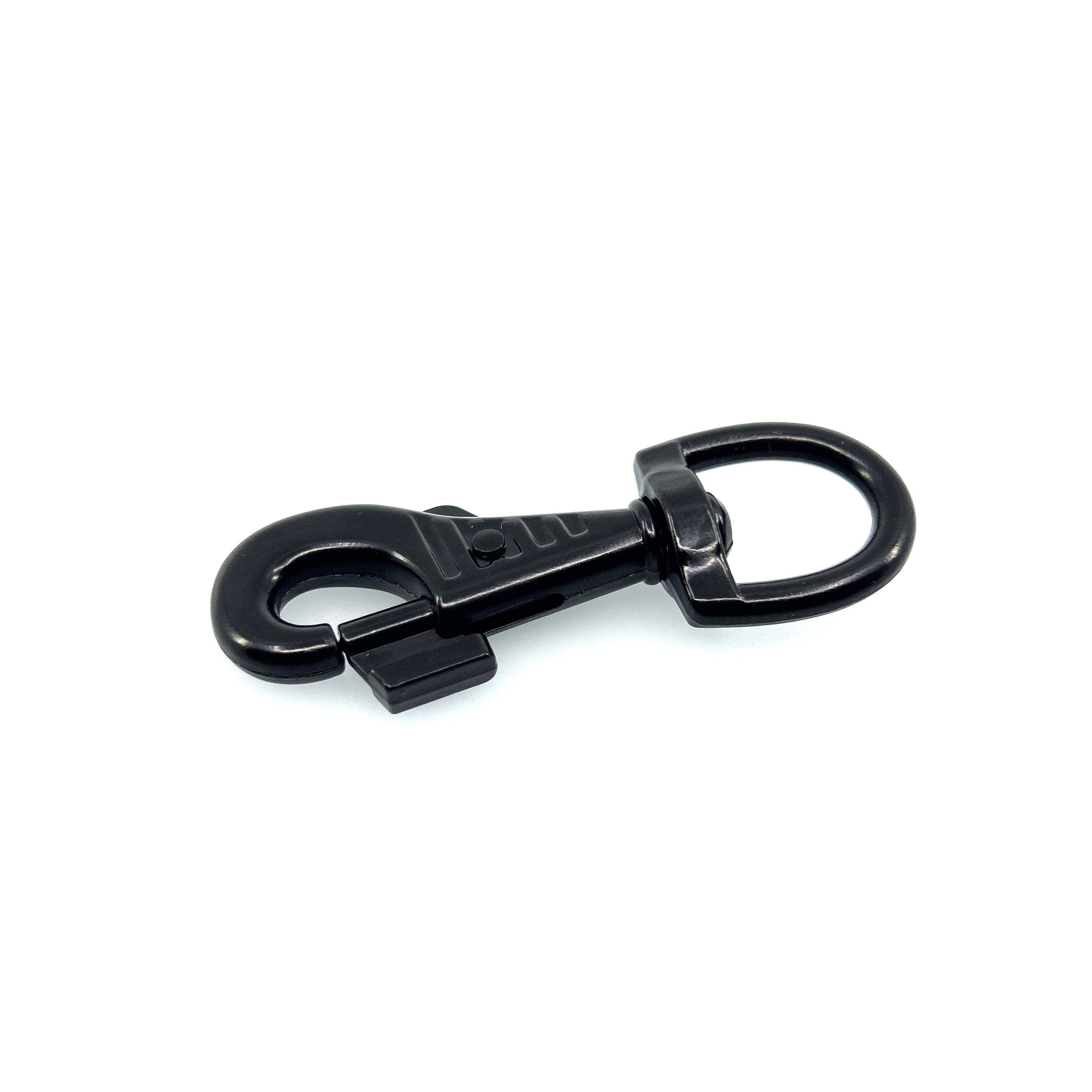 Otočná karabina s prolisem, vyrobená ze zinkové slitiny. Žebrovaná karabina s kvalitním zpracováním.