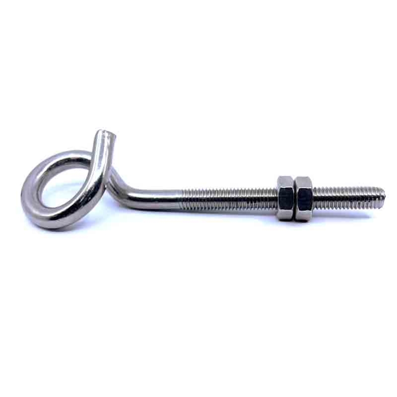 Houpačkový hák s metrickým závitem. Tento hák se závitem a se zakrouceným okem umožňuje bezpečné zavěšení houpačky pomocí matice a podložky, kdy je možné zavěšení nad nosný trám.