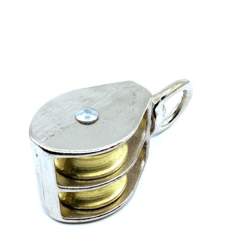 Kladka dvoukolečková otočná s ocelovými kolečky je pozinkovaná. Otočení slouží k lepšímu otáčení břemene. Otočný závěs v podobě oka ve tvaru D a samotné pouzdro kladky je ze zinkové slitiny.