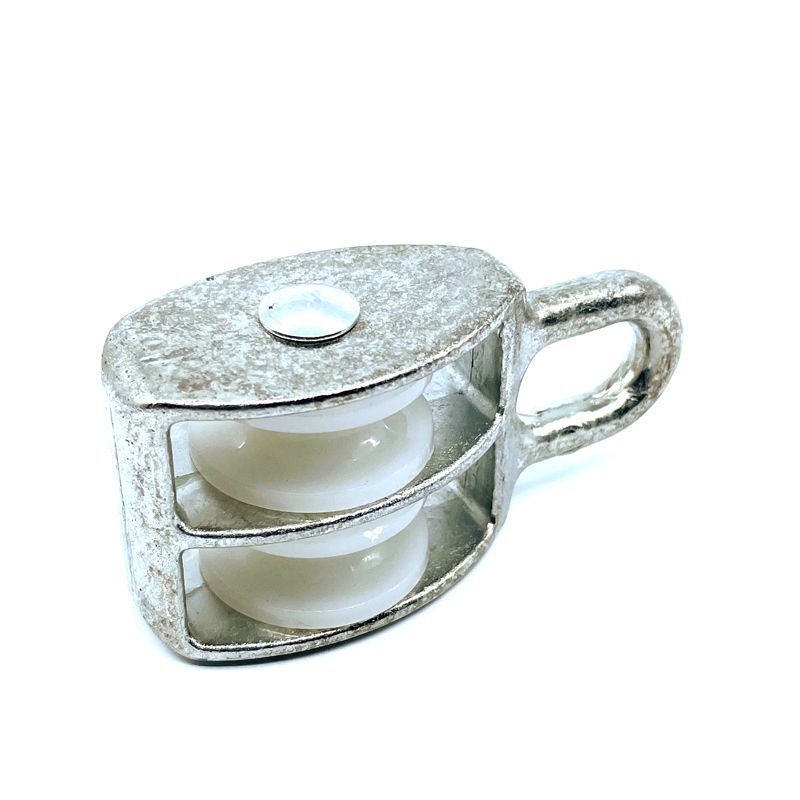 Kladka dvoukolečková pevná se silonovými kolečky je pozinkovaná. Ocelová kladka je s okem a dvěma cívkami. Cívky jsou vyrobeny z nylonu.
