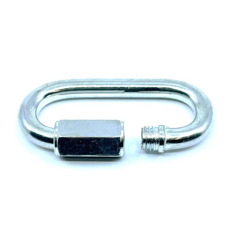 Pozinkovaná karabina s maticí je vhodná ke spojení řetězových článků a zavěšení lehkých břemen.