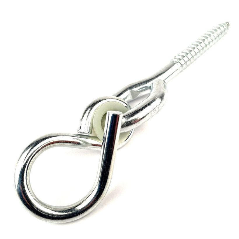 Hák houpačkový s vrutem a objímkou pozinkovaný je speciální hák pro bezpečné zavěšení houpačky (houpací sítě, lezecké sítě, lezeckého lana). Tento hák s objímkou je vyroben z galvanicky pozinkované oceli. Objímka má teflonový kroužek pro hladší pohyb a zabrání vydávání nežádoucích zvuků "vrzání" při používání. Díky této povrchové úpravě háky lépe odolávají abrazi a mechanickému poškození.