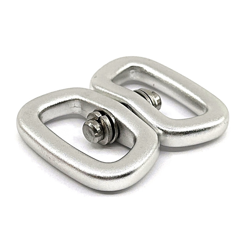 Oboustranná otočná spojka je určena především pro zavěšení otáčivých a pohyblivých předmětů. Umožňuje, aby se připevněné prvky otáčely kolem své osy, což zabraňuje kroucení řetězů, kabelů, lan.