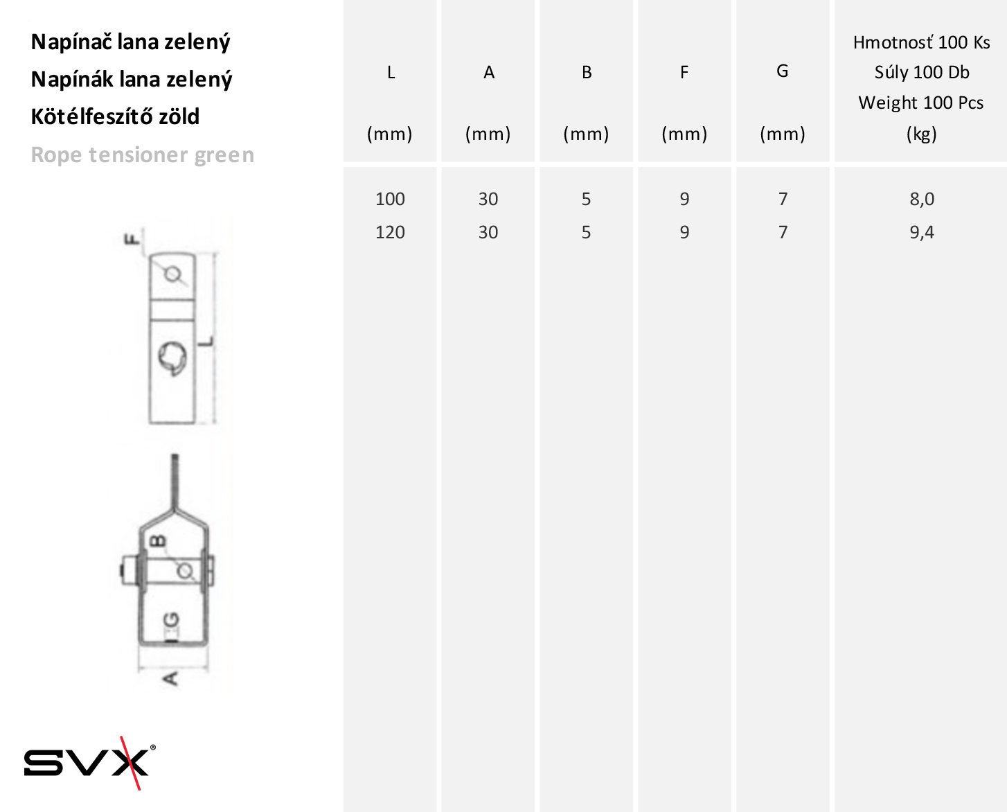 Napínač lana zelený 120mm