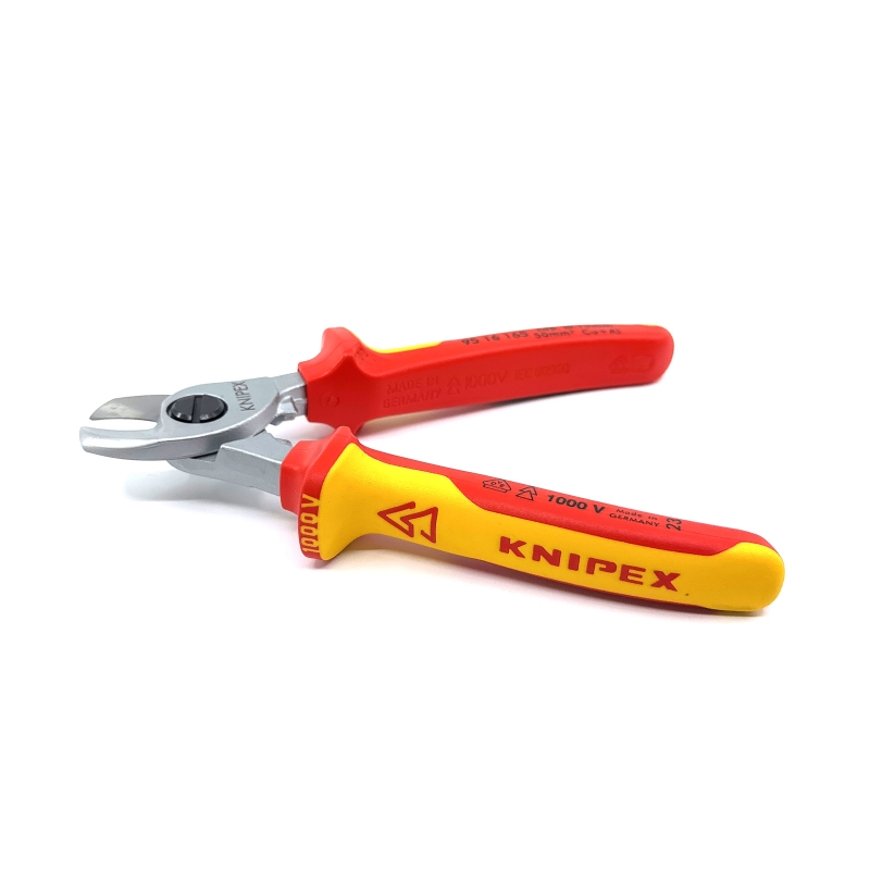 Nůžky na kabely s multi-komponentními rukojeťmi značky KNIPEX. Zobrazit více