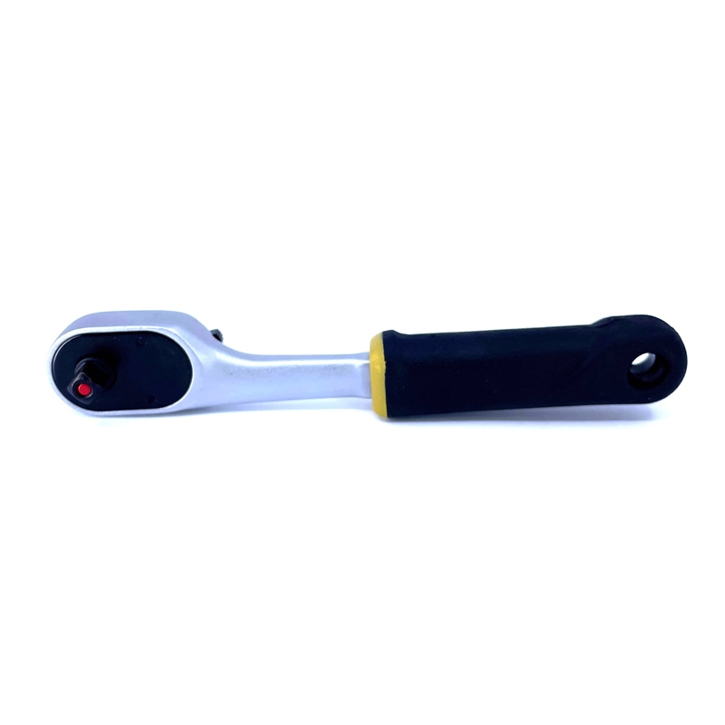 Zpětný přepínač integrovaný do ráčnového mechanismu. Pro přenos velkého utahovacího momentu při utahování je v záběru vždy současně několik z 45 zubů ráčny.