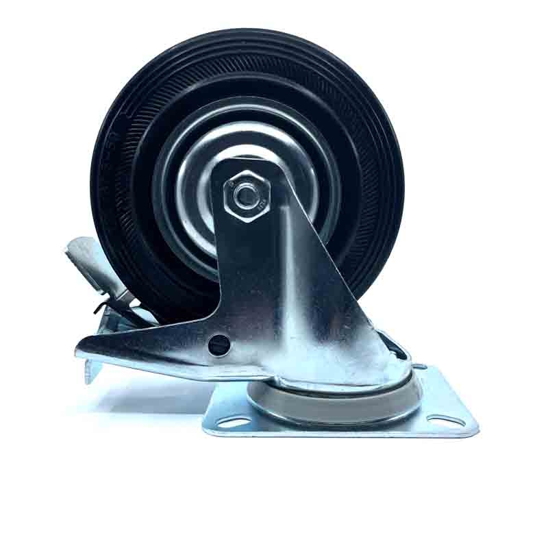 - Brzda zadní - nachází se podle směru pohybu za rolovacím kolečkem. Používá se na ploché podvozky manipulačních vozíků/plošinové vozíky.