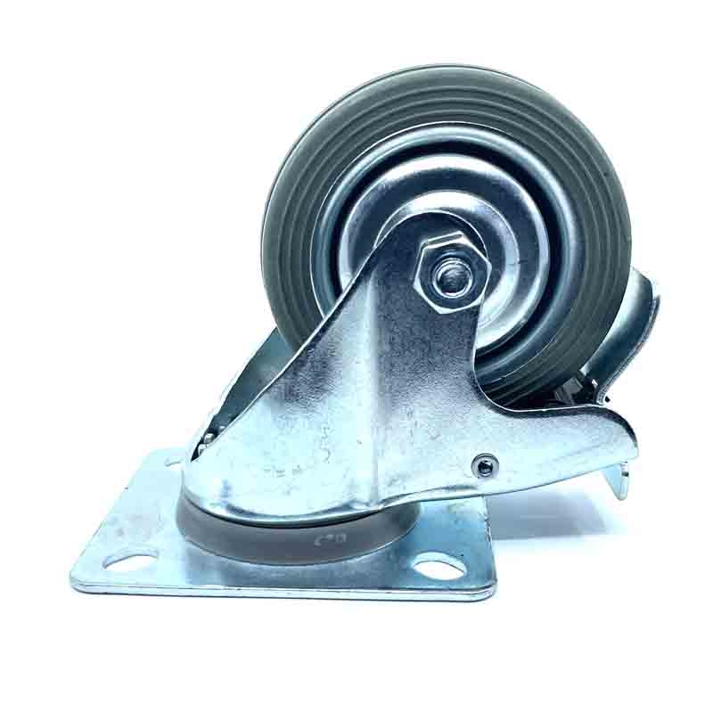- Brzda zadní - nachází se podle směru pohybu za rolovacím kolečkem. Používá se na ploché podvozky manipulačních vozíků/plošinové vozíky.