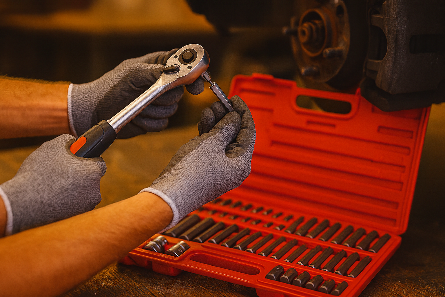 - 2 pohony v jedné sadě: 3/8″ i 1/2″ – kompatibilní s běžnými ráčnami a momentovými klíči.