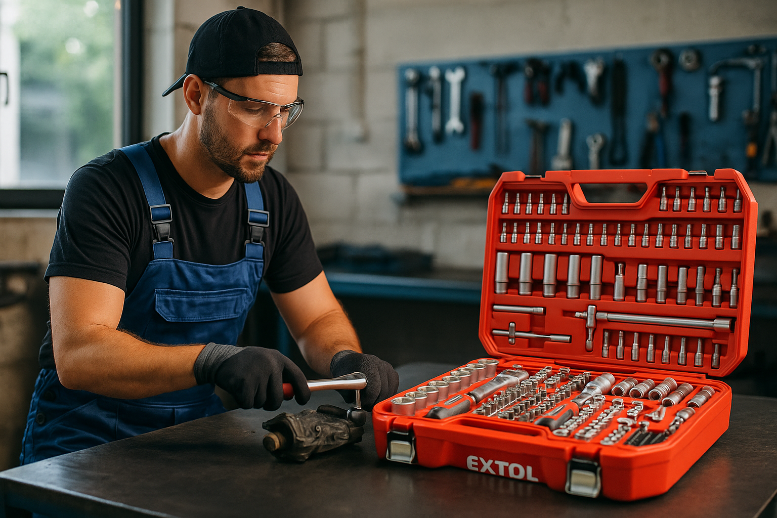 Prémiová 172dílná gola sada EXTOL PREMIUM pokrývá všechny běžné i náročné práce v dílně, servisu i domácnosti. Tři standardní upínání (1/4", 3/8", 1/2"), ráčny s jemným chodem (45 zubů), široký rozsah hlavic včetně TORX/E profilů, bitů a příslušenství v odolném kufru – vše z chrom-vanadiové oceli pro vysokou životnost a přesné dosednutí.