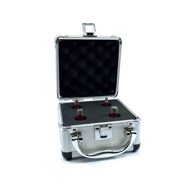 Vyřezávací sada diamantových vrtáků DCB11 - 6 - 8 - 10 - 12 mm / M14 - v praktickém kufříku. Tyto vrtáky zaručují rychlost vrtání do nejtvrdších materiálů. Zchladit - stačí ponořit do sklenice s vodou, nebo nechat v otáčkách ochladit vzduchem.