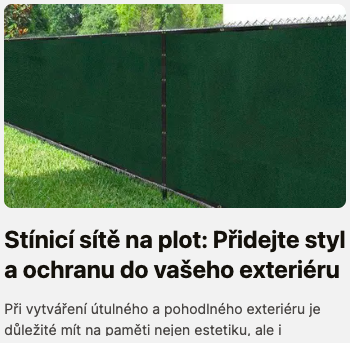 Dokonalé soukromí a ochrana před sluncem! Naše stínící síť efektivně snižuje průsvitnost a chrání váš pozemek před pohledy i větrem. Jednoduchá instalace v pravidelných bodech každých 50 cm zajistí stabilitu a dlouhou životnost. Ideální řešení pro ploty, terasy či zahrady!