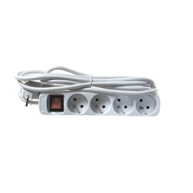 4 zásuvky 5m 3G1,5 Prodlužovací kabel 16A bílý s vypínačem