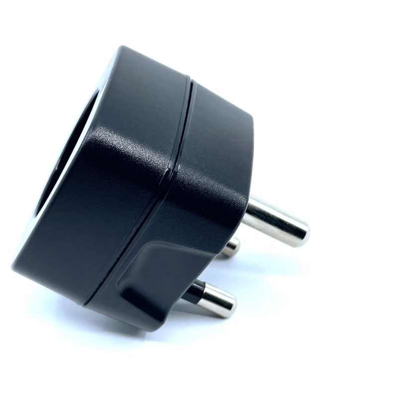 Cestovní zástrčka s ochranným kontaktem pro připojení elektrických přístrojů s německým zásuvným systémem ochranných kontaktů pro zásuvky v Jižní Africe. Adaptér je ideální pro nabití přístrojů na cestách nebo na dovolené.