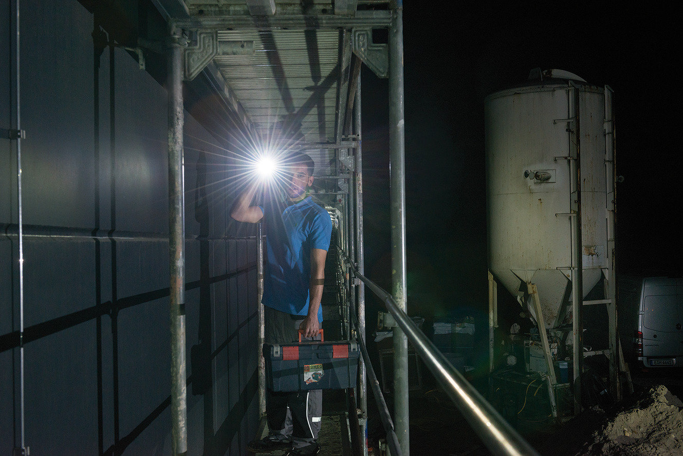 Plynulé zaostřování umožňuje přechod od širokého světla na blízko k úzkému, zaostřenému paprsku na větší vzdálenost – jednoduše posunutím přední části svítilny. Svítilna nabízí čtyři režimy svícení (100 % / 40 % / 10 % / SOS), které se pohodlně přepínají pomocí Soft Touch spínače. Vyměnitelný Li-ion akumulátor (3,7 V / 600 mAh) se nabíjí přes USB-C a na nejnižší úroveň vydrží svítit až 13 hodin. Krytí IP44 chrání svítilnu před prachem a stříkající vodou, takže je vhodná i pro práci ve vlhkém prostředí.