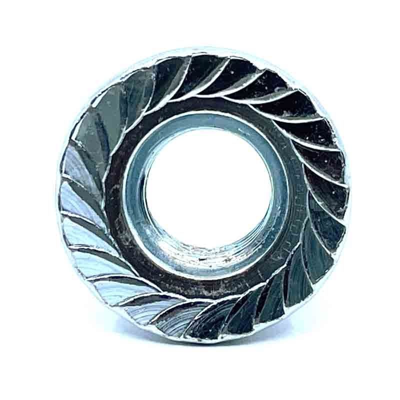 Šestihranné matice s ozubeným límcem se používají na jednoduché zajištění šroubového spoje, kdy se ozubení na spodní straně límce zaryje do povrchu materiálu a tím zabraňuje uvolnění matice. Přídavný přírubový prvek eliminuje potřebu používat další podložky, což snižuje náklady na montáž.