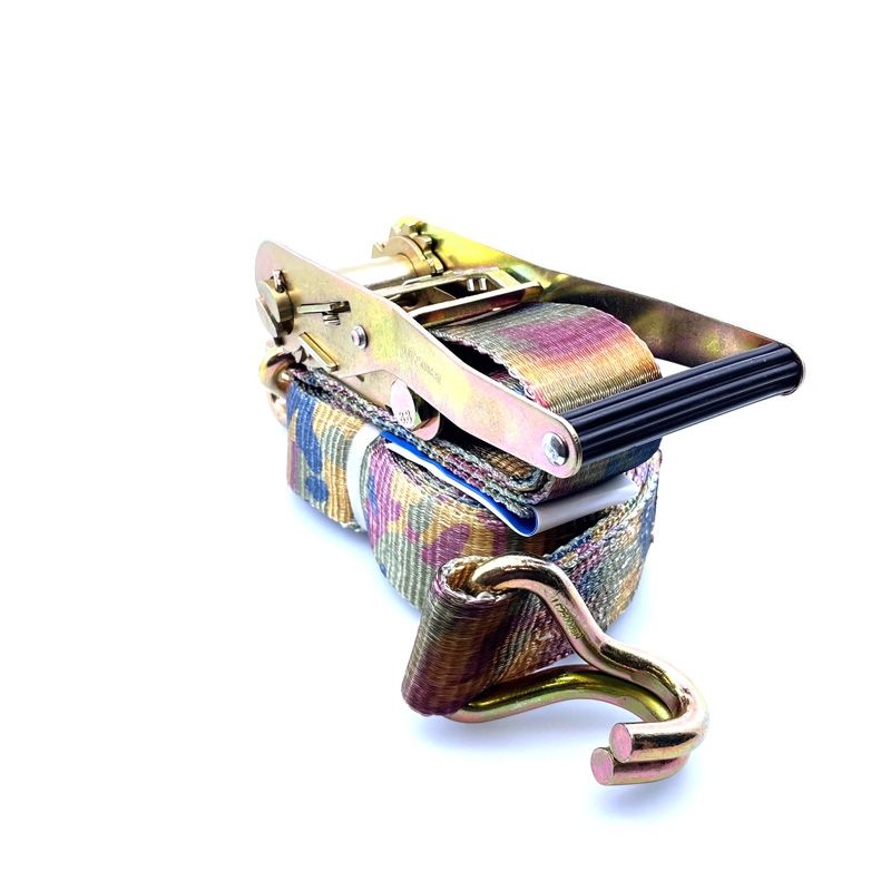 Kurtny jsou speciální upínací pásy s ráčnovými mechanismy, které slouží pro bezpečné upnutí nákladu, například na vozíku či vlečce. Kotvení pomocí upínacích pásů je nejefektivnějším způsobem zabezpečení nákladu, přičemž eliminujete nárazy a poškození nákladu. Tento kvalitní dvoudílný upínací pás je ideální například pro lesnictví, jakoukoliv přepravu i pro hobby použití. Je vyroben v souladu s nejnovější normou EU EN 12195-2 a je odolný vůči UV záření. Náš upínací pás se vyznačuje dlouhou životností a malou roztažností. Měkký materiál chrání povrch vašeho nákladu. Při použití pásů na ostré hrany použijte vhodnou ochranu, jako je plastový ochranný roh a podobně.