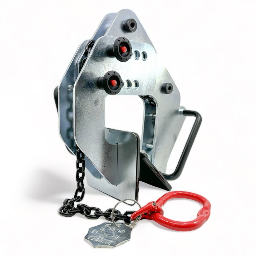 - Svěrku zavěsíte prostřednictvím vysokopevnostního řetězu přímo na hák jeřábu.