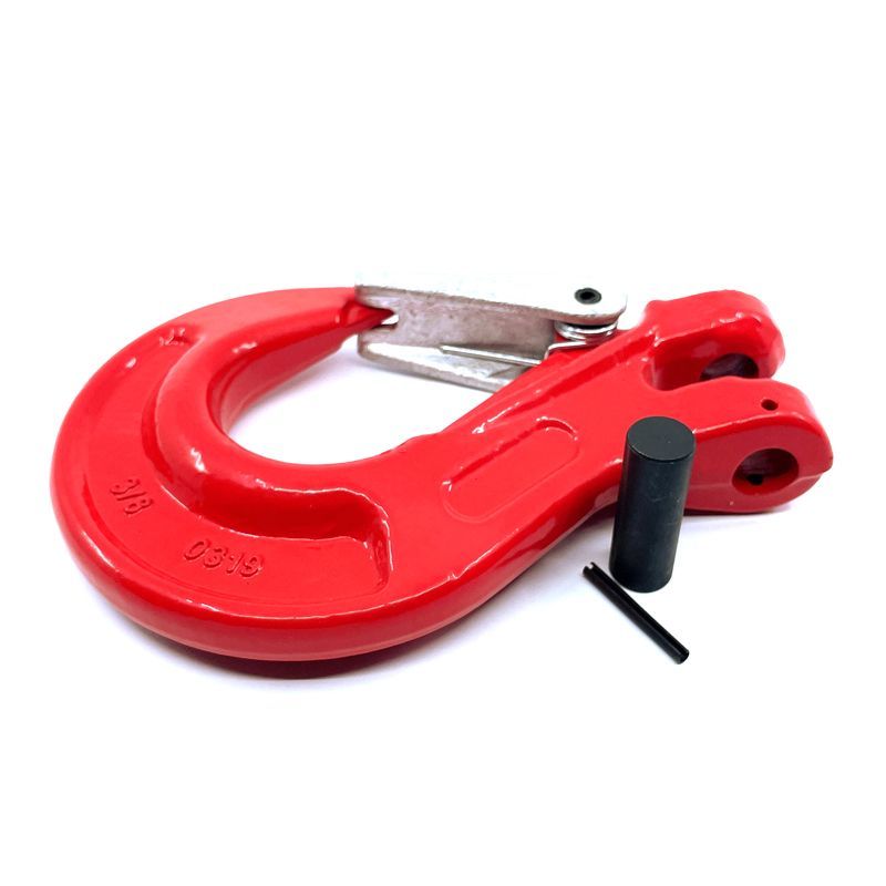Vidlicový hák pevnostní třídy 80 je vyroben z vysoce kvalitní oceli a používá se na výrobu řetězových závěsů a zvedacích zařízení pomocí řetězů. K připevnění na řetěz se používá zajišťovací čep, který je upevněn závlačkou, což umožňuje rychlou instalaci háku bez použití spojovacího článku. Proto, aby se zabránilo náhodnému odepnutí břemene, je součástí háku kovaná západka.