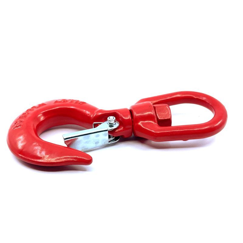Otočný červený hák je vyroben z oceli C40 a je povrchově upraven červeným lakem. Otočným hákem je možné přemisťovat nebo fixovat břemena pomocí zvedacího zařízení, a to jak na stavbě, při přepravě, tak i v domácnosti a v mnoha dalších odvětvích. Velkou výhodou tohoto háku je, že nám umožňuje otočit zavěšený náklad o 360°. Všechny části tohoto produktu jsou vyrobeny z vysoce pevné oceli. Tento hák se vyznačuje vysokou spolehlivostí a je považován za nejpopulárnější mezi podobnými zařízeními na zvedání břemen. Je vhodný pro menší jeřáby či nakladače.