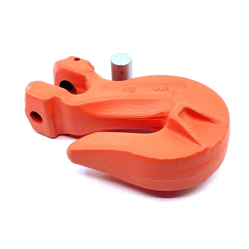 Zkracovací hák s vidlicí pevnostní třídy 100 je vyroben z vysoce kvalitní oceli a jeho povrchovou úpravou je komaxit v oranžové barvě. Zkracovače nám obecně pomáhají přizpůsobit požadovanou délku jednotlivých pramenů řetězového úvazku. Jinými slovy, zkracovač na řetěz slouží ke zkrácení délky řetězu. Jejich velkou výhodou je, že zkrácením řetězu nedojde ke snížení nosnosti řetězu. K připevnění na řetěz se používá zajišťovací čep, který je upevněn závlačkou, což umožňuje rychlou instalaci háku bez použití spojovacího článku. Správný design, pečlivé kování, precizní kontrolované kalení a temperování poskytují maximální pevnost bez nadměrné hmotnosti a objemu.